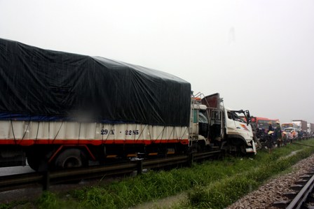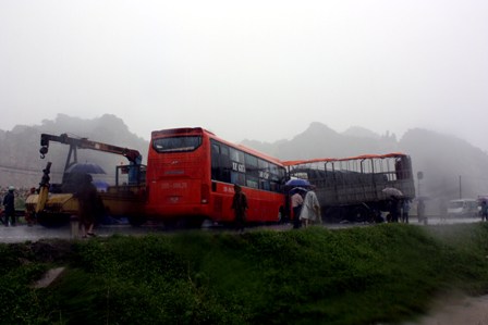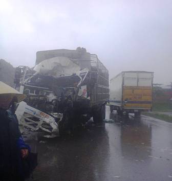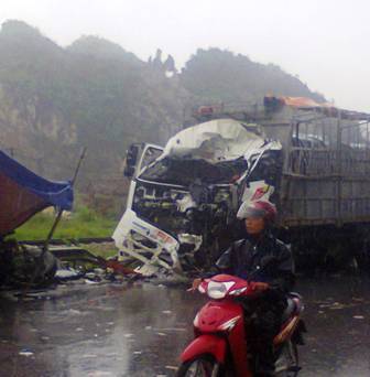Cú đâm quá mạnh, làm đầu hai xe dính vào nhau, cùng lúc đó, một chiếc xe tải khác mang BKS: 29L - 2285 đang chạy hướng Hà Nội - Vinh ập tới và tiếp tục đâm vào hai chiếc xe bị nạn trên.