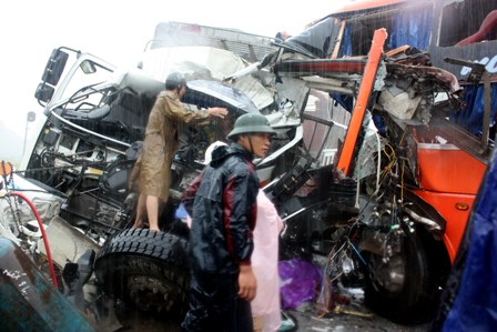 Xe tải đối đầu xe khách 17 người chết và bị thương