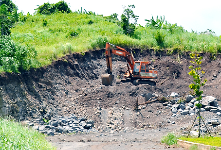 Đơn vị thi công đang đào một quả đồi để mở đường vào một bãi chôn lấp của dự án. Ảnh: V.Nam