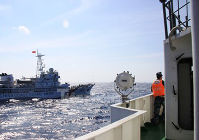 Tàu CSB Trung Quốc áp sát tàu CSB Việt Nam. Ảnh: Nguyễn Huy