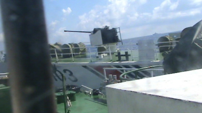 Khẩu pháo của tàu Hải cảnh 44103 Trung Quốc luôn ở trạng thái tháo bạt - Nguồn: Cảnh sát biển VN