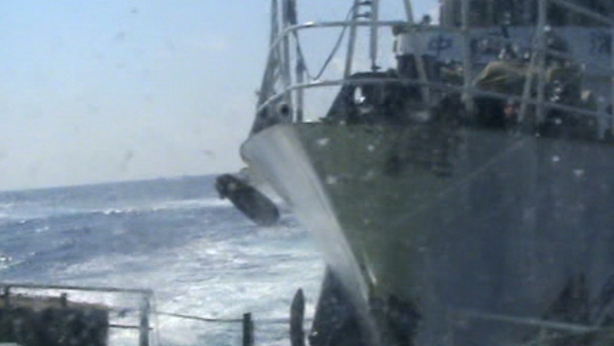 Tàu hải cảnh Trung Quốc tăng tốc sẵn sàng đâm thẳng vào tàu Cảnh sát biển Việt Nam - Nguồn: Cảnh sát biển VN