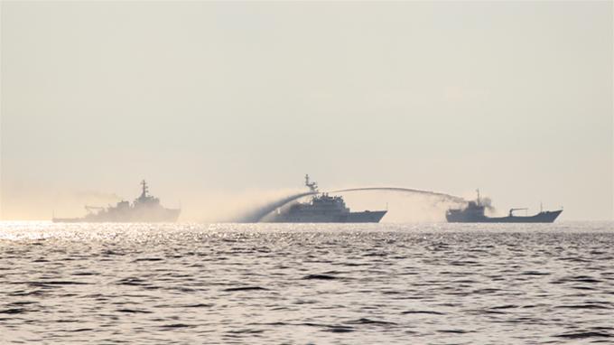 Tàu Trung Quốc phun vòi rồng tấn công tàu kiểm ngư Việt Nam lúc rạng sáng 28-5 - Ảnh: My Lăng