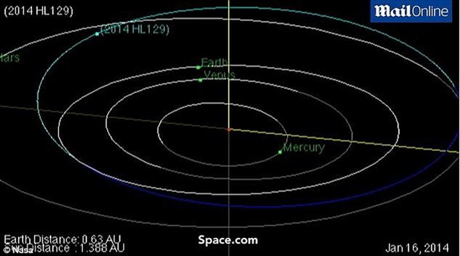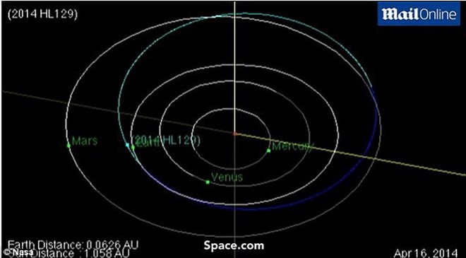 Hình ảnh của NASA mô tả quỹ đạo của thiên thạch HL 129.