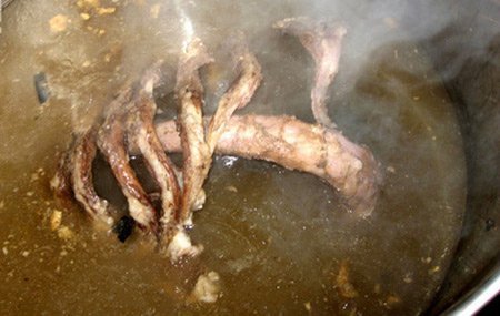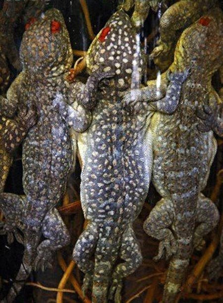 | Bào thai rắn là thứ biệt dược chỉ dành cho các đại gia. Thực khách phải dùng đũa chọc vỡ lớp màng nhày bao bọc phía ngoài và gắp bào thai rắn còn ngoe nguẩy nhúng qua nước sôi để thưởng thức. |