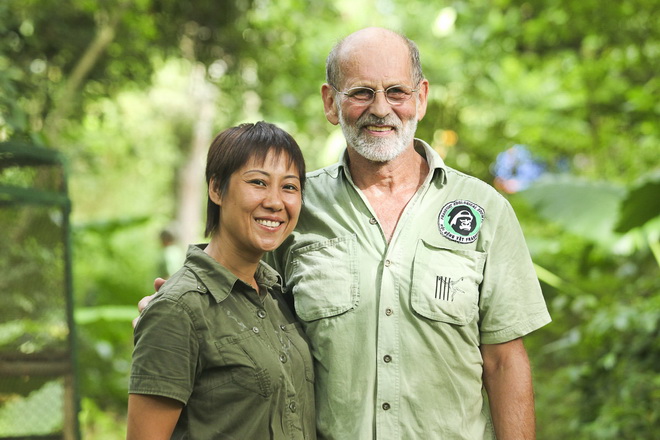 | Hai vợ chồng "ba" Tilo Nadler và "mẹ" Thu Hiền, những người đã sống và làm việc tại trung tâm cứu hộ linh trưởng lớn nhất Việt Nam được hơn 15 năm nay. Cũng tại trung tâm này hai cậu con trai kháu khỉnh của họ đã chào đời. |