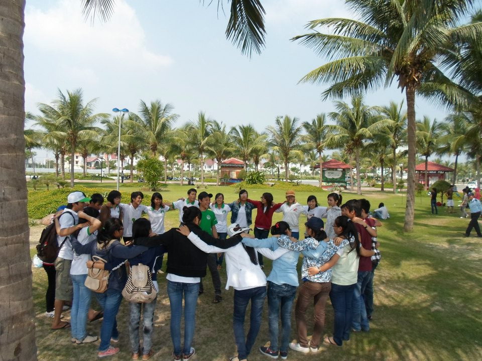 Các thành viên cùng sinh hoạt giao lưu sau hoạt động nhặt rác