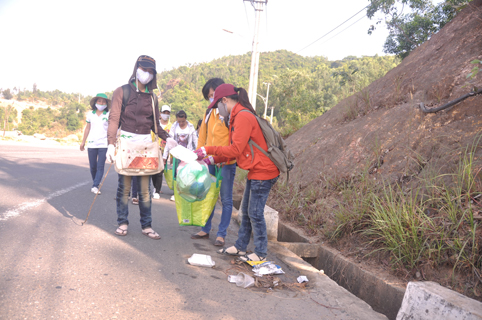 Các thành viên của CLB đã thu gom rác thải trên tuyến đường Hoàng Sa, từ chân bán đảo Sơn Trà đến chùa Linh Ứng với chiều dài 2km.