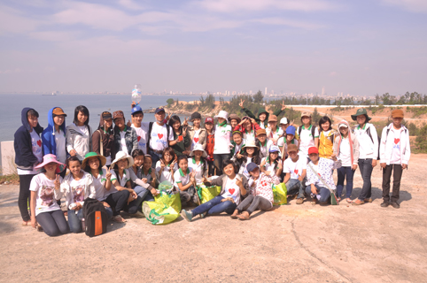 Các thành viên thu gom rác thải trên bán đảo Sơn Trà ngày 6/5/2012