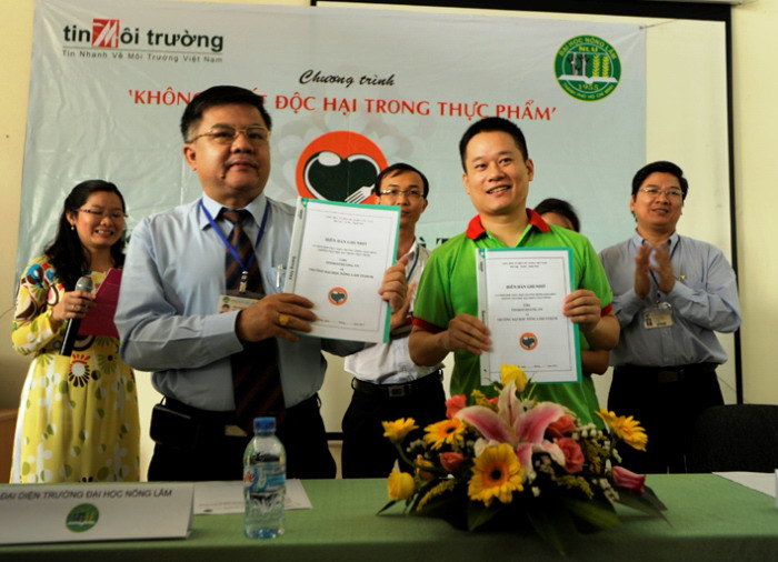 Ông Nguyễn Quang Minh (phải) trong lễ phát động dự án tại trường ĐH Nông Lâm TP.HCM