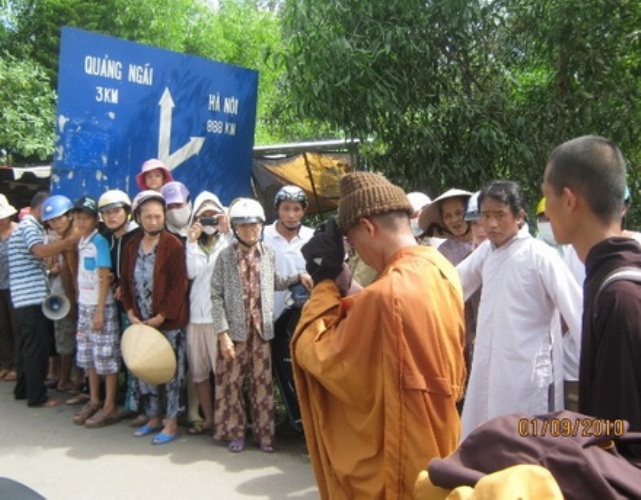 | Hình ảnh này được ghi lại vào ngày 12/3/2011, khi nhà sư Thích Tâm Mẫn đến địa phận tỉnh Thừa Thiên Huế. |
