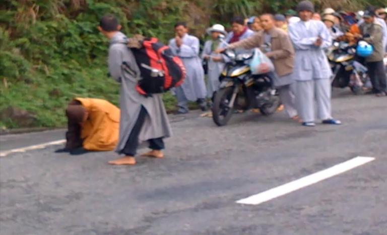 | 1/9/2010, nhà sư “Nhất bộ nhất bái” đi tới địa phận tỉnh Quảng Ngãi, cách Hà Nội 888km. |