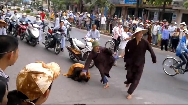 | 17/8, khi đi qua địa phận tỉnh Bắc Ninh, đoàn tháp tùng nhà sư Thích Tâm Mẫn đánh chảy máu đầu anh Đỗ Văn Cường (Liên Bão, Tiên Du, Bắc Ninh). Sự việc khiến nhiều người dân bức xúc và bất ngờ. |
