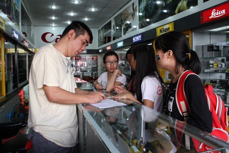 Các bạn TNV trên đường vận động các hộ dân và doanh nghiệp tắt đèn