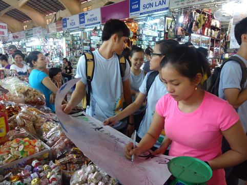 Các đội thi được thử sức mình để thuyết phục người dân đổi rác thải nguy hại lấy túi giấy thân thiện môi trường do chính các bạn làm. Các bạn tham gia vòng vận động còn được tích lũy thêm kinh nghiệm giao tiếp ngoại ngữ khi mời khách du lịch nước ngoài cùng ký vào bản cam kết bảo vệ môi trường cùng với thông điệp môi trường của chính họ. Đội thi còn là những có khả năng truyền đạt ngoại ngữ rất tốt, khi chỉ với vài phút các bạn đã có thể dạy người khách du lịch nói một câu tuyên truyền bảo vệ Môi trường bằng Tiếng Việt.