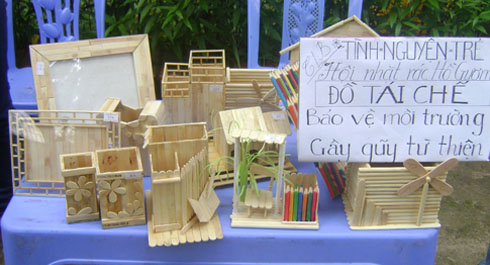 Các sản phẩm tái chế được bày bán ở các hội trại, chương trình tình nguyện.