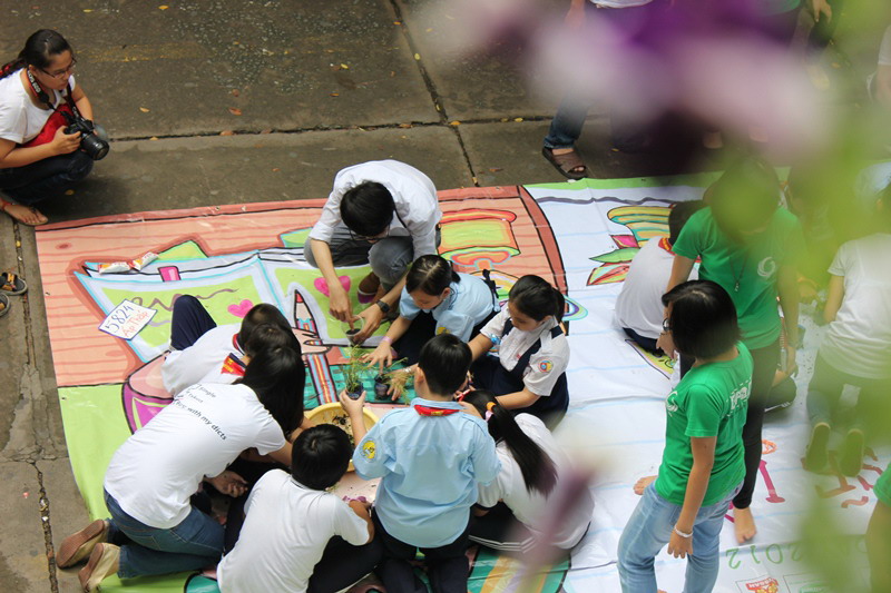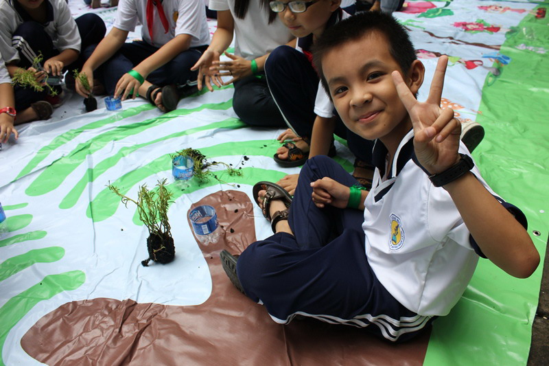 Bên cạnh việc xây dựng vở kịch đầy hấp dẫn thì hoạt động hướng dẫn các em nhỏ trồng và chăm sóc cây xanh cũng là một hoạt động để lại nhiều ấn tượng sâu sắc với các em. Với mục tiêu “vì tương lai xanh của bé”, chương trình “Tấm khiên thần kỳ” đã hướng dẫn các em tái chế vỏ chai nước cũ để làm chậu – những điều đơn giản nhưng lại rất thiết thực để giúp các em thêm hiểu và quan tâm đến môi trường. Chương trình mong muốn qua hoạt động này các em sẽ hiểu thêm được tầm quan trọng to lớn của cây xanh và sẽ đóng góp sức nhỏ bé của mình vào việc trồng và bảo vệ môi trường.
