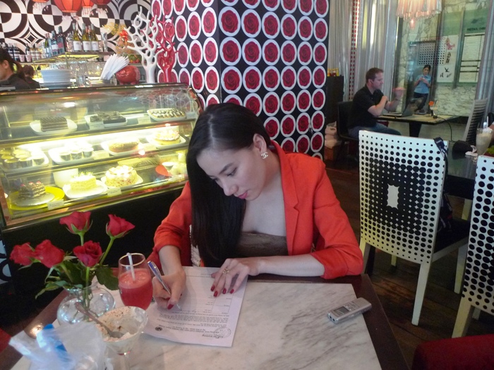 -PV: Cám ơn Chung Thục Quyên đã dành thời gian ký ủng hộ dự án “Không chất độc hại trong thực phẩm” do Tin Môi Trường (cpeco.org.vn) phát động. Công việc cuối năm của Quyên chắc bận lắm?