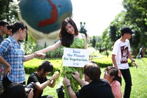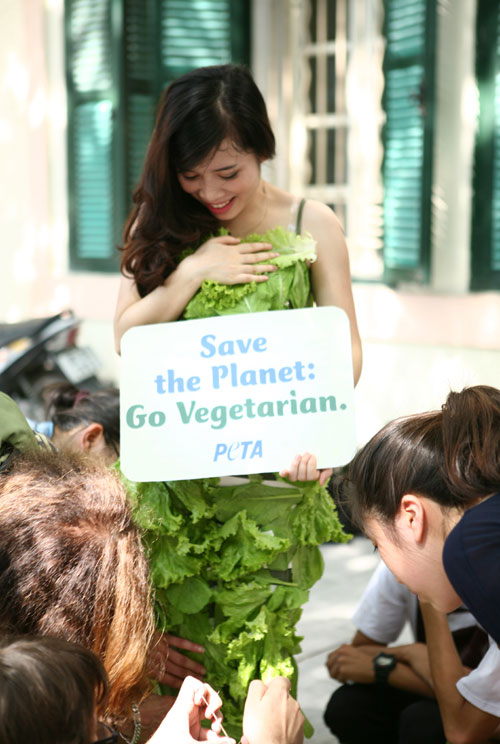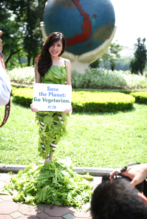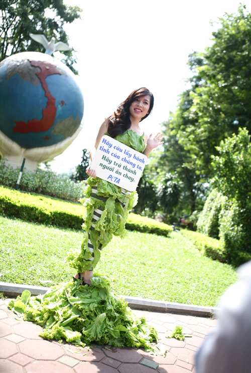 Đây là hoạt động nhằm ủng hộ Tổ chức Tổ chức Bảo vệ Động vật (PETA) châu Á. Nhân vật mặc chiếc váy này là nữ sinh trường Học viện Tài chính Hà Nội. Cùng với chiếc váy rau diếp, cô gái còn cầm trên tay tấm bảng hiệu có dòng chữ "Hãy cứu lấy hành tinh của chúng ta. Hãy trở thành người ăn chay".