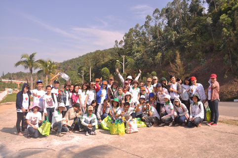 Các thành viên CLB Green Viet thu gom rác thải trên bán đảo Sơn Trà ngày 6/5/2012