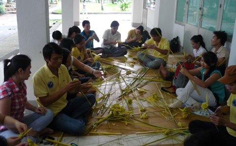 Theo bạn Trương Thị Thanh Trúc, chủ nhiệm “Câu lạc bộ Nghệ thuật xếp lá dừa dân gian” của trường ĐH KHXH & NV cho biết, thì : “Từ trước năm 2009, một số sinh viên của trường ĐH KHXH & NV tìm tòi và sáng tạo nên loại hình xếp lá dừa, nhưng các sản phẩm chưa được đa dạng và phong phú, hơn nữa vì không được tổ chức hợp lý nên hoạt động của nhóm này khá riêng lẻ và manh mún.Thấy được điều đó bọn mình đã đề xuất với hội Sinh viên trường để thành lập một Câu lạc bộ với mong muốn đưa loại hình này trở thành một sân chơi thực thụ”.