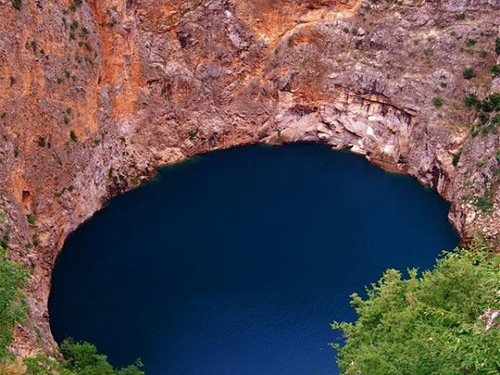 Red Lake, Croatia là một trong những hố sụt lớn nhất thế giới. Hố nước này nổi tiếng với rất nhiều hang động và vách đá cao 241m so với mực nước hồ.