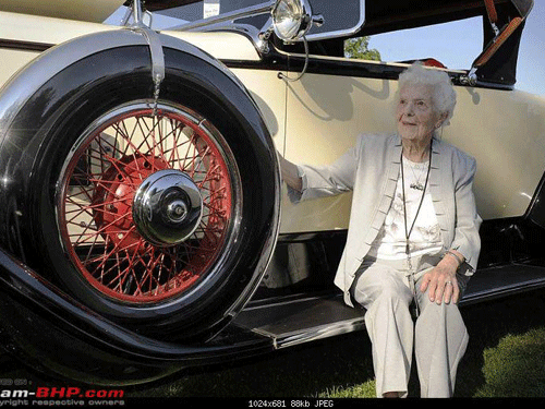 Bà Margaret Dunning ngồi bên chiếc xe cổ của mình - Ảnh Team-BHP