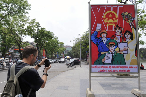(Pano cổ động tuyên truyền ngày bầu cử ở Hồ Gươm - Ảnh: VnExpress )