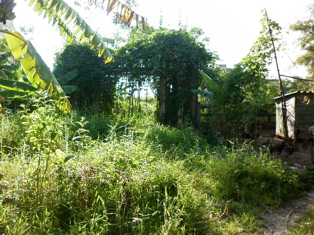 | Cổng rào vào khu mộ đầy dây leo. |