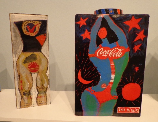 1. "Vệ nữ Việt Nam" trong tác phẩm của Vũ Dân Tân thắt đáy lưng ong, có bộ ngực, vòng hông, rất hấp dẫn, nhưng không có đầu. "Vệ nữ Việt Nam" trong tranh vẽ trên vỏ hộp của Nguyễn Nghĩa Cương thi thoảng có đầu, nhưng được thay bằng biểu tượng "Hàng Việt Nam chất lượng cao", hoặc trông như một vật méo mó có như không. Tóm lại, dù thế nào chăng nữa, thì các tác giả cũng không nhấn mạnh vào cái-có-trong-đầu, tức là trong bộ não của người phụ nữ.