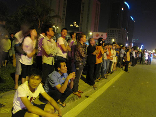 Người dân hiếu kỳ đứng xem công tác cứu hỏa