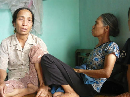 | Người mẹ đáng thương (bên phải) một lúc mất cả con, cháu. |
