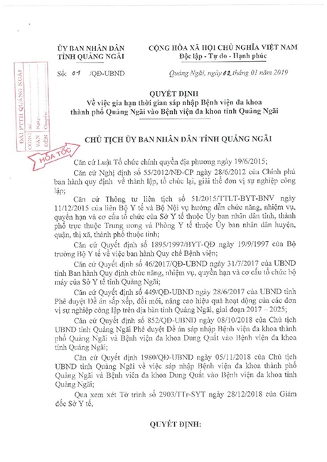 Quảng Ngãi: Tạm dừng việc sáp nhập bệnh viện thành phố và tỉnh